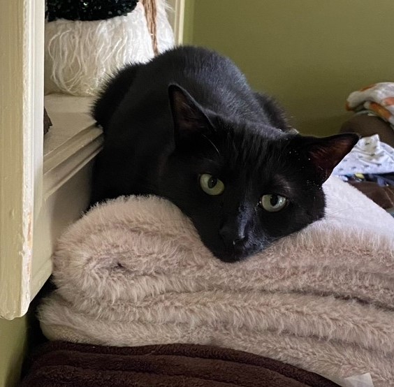 Tuesday, September 09, 2025Gem is a beautiful 1-year-old spayed short-haired female, solid black. She's had all her vaccines, including rabies, tested negative for FELV/FIV, and is litter box trained and microchipped.