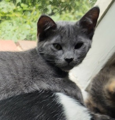 Thursday, August 28, 2025This beautiful short-haired grey male kitten, born on 3.25.2025, needs a good home! He is an inside kitty, litter box trained, and has had his vaccinations, including rabies.