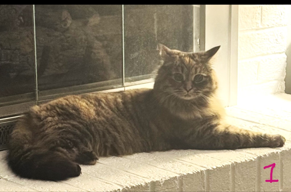 1. Lucy-female-long-haired tabby-born April 2023. She has been spayed. Vet records are available. Indoor cat. Lucy loves to play and also loves to sit on your lap.Very sweet natured.