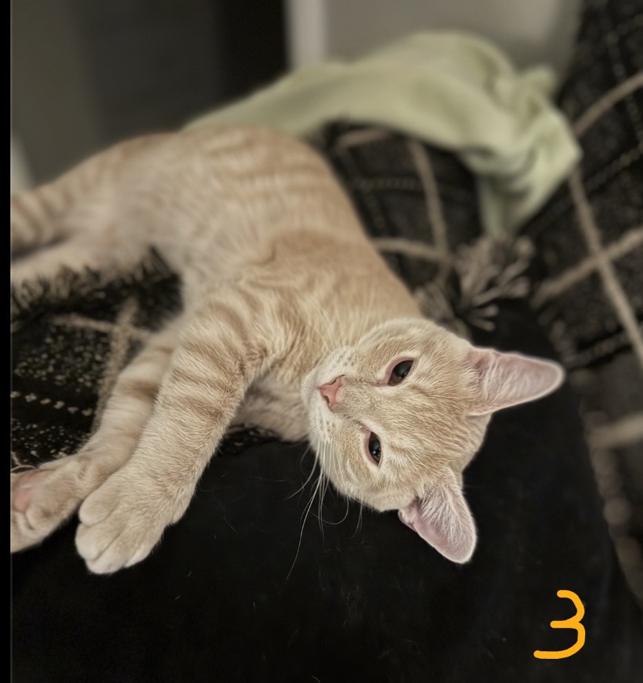 3. Biscuit-male-born April 2024. He has been neutered and vet records are available. Indoor cat. Biscuit is very gentle & loving, and adores getting attention.